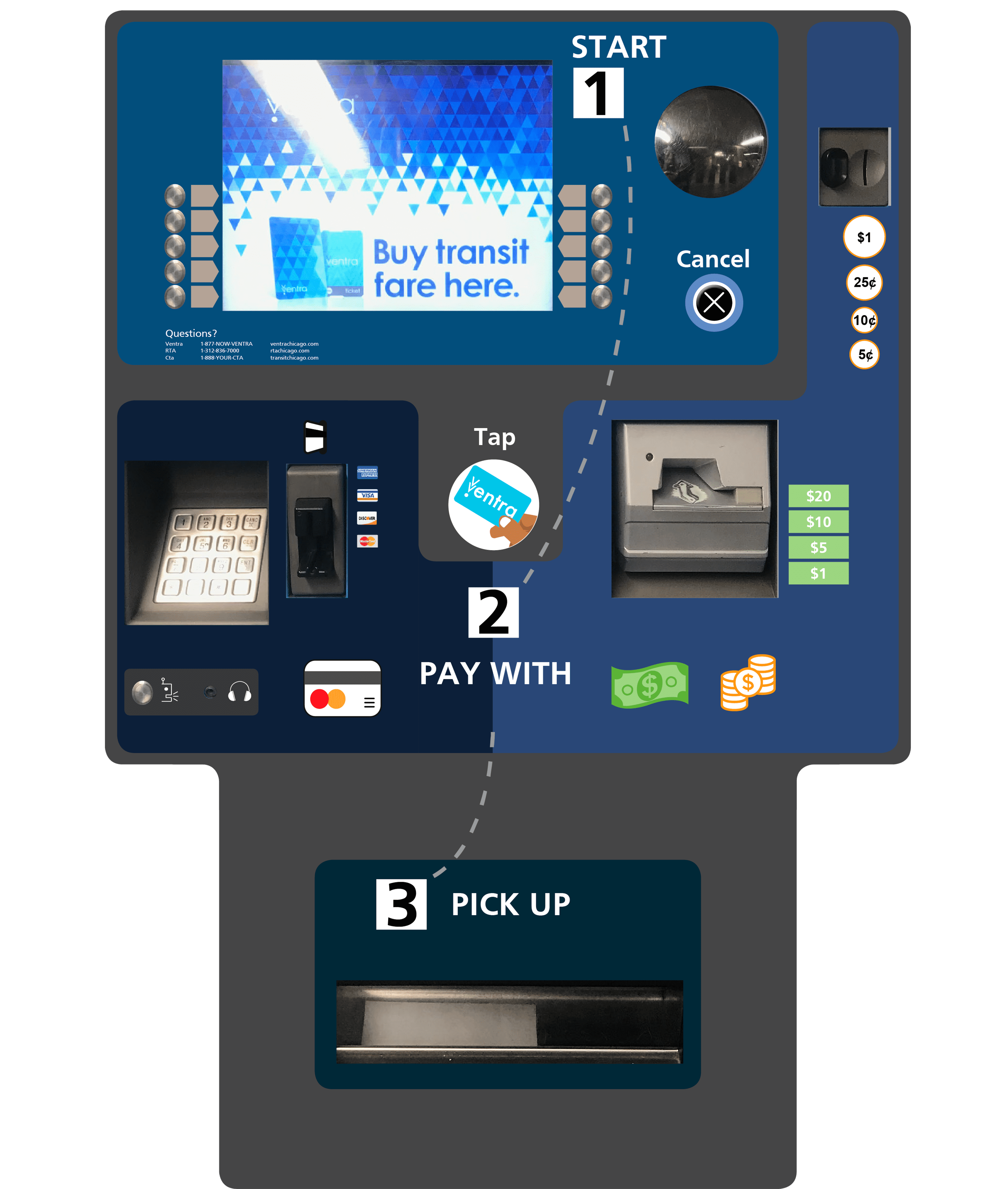 It's a project of redesigning current ticket kiosk interface in the CTA (Chicago Transit Authority) stations. The goal of this project is to improve peoples' experience of buying tickets, make them feel no more confuse when standing in front of the CTA ventra kiosk. The redesign doesn't includes screen UI.